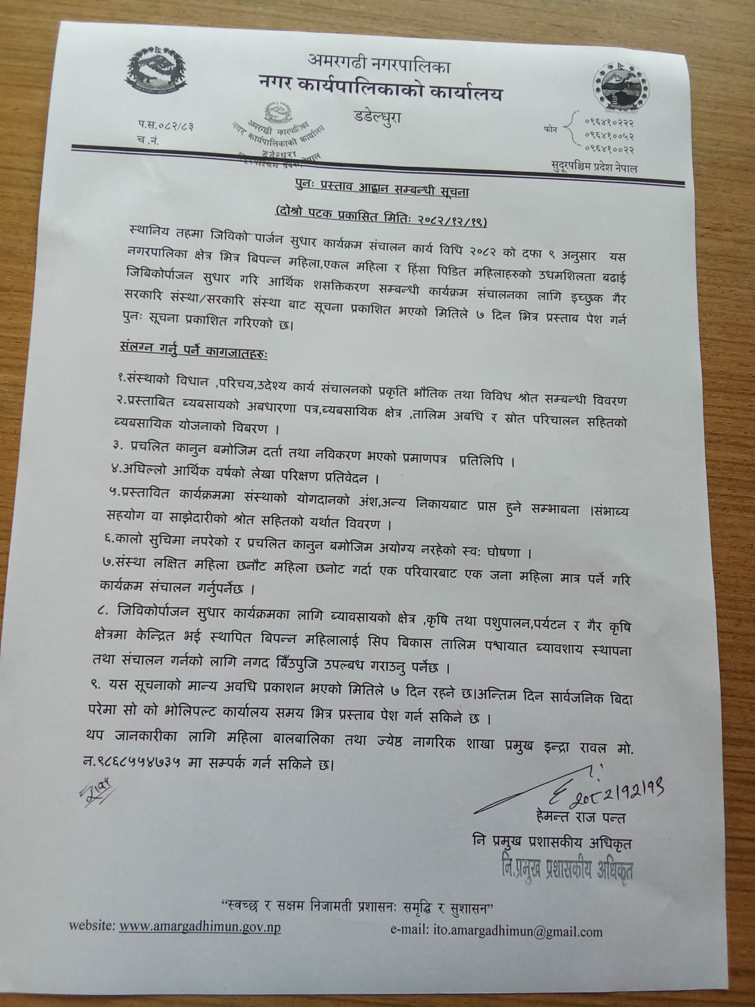 पुनः प्रस्ताव आव्हानको दोस्रो पटक प्रकाशित सूचना ।।।
