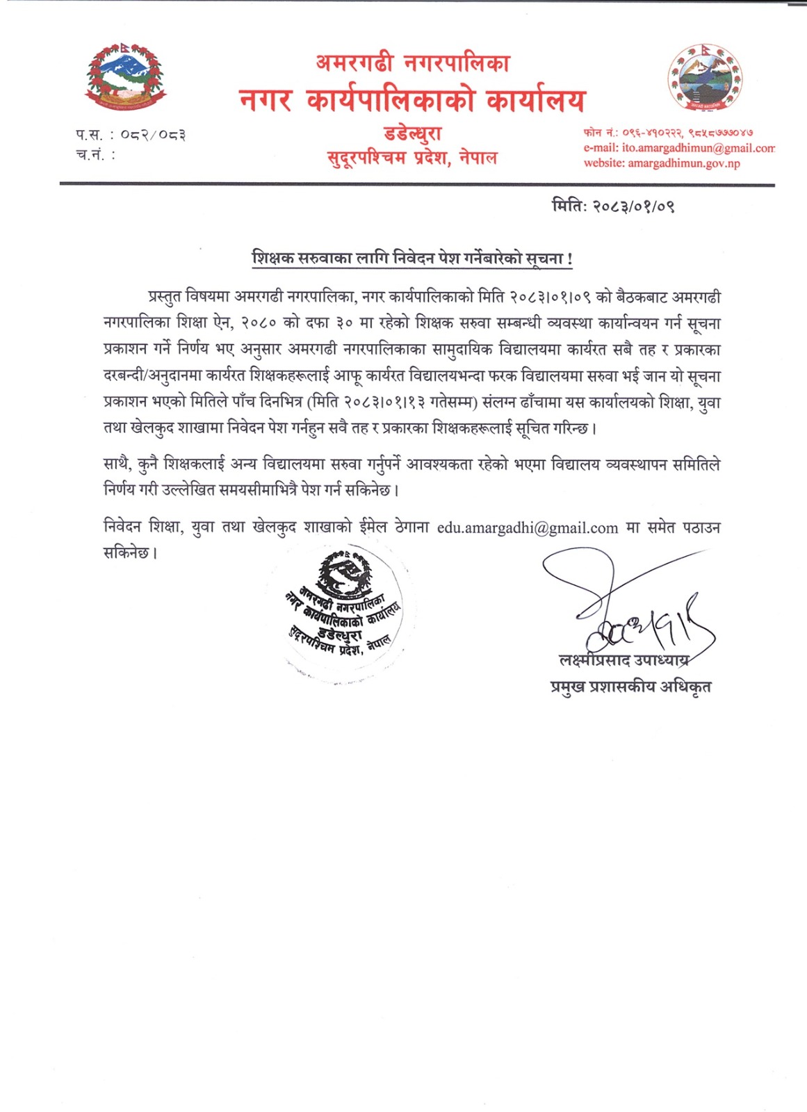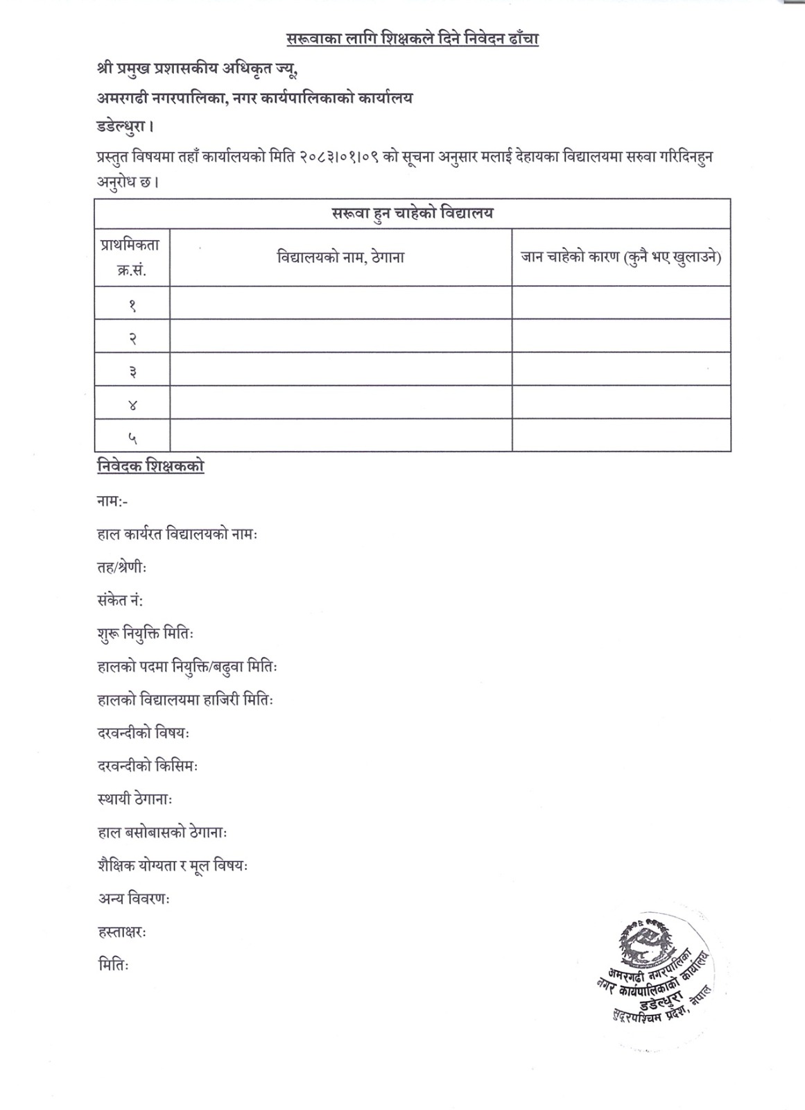शिक्षक सरुवाका लागि निवेदन पेश गर्ने बारेको सूचना ।।।
