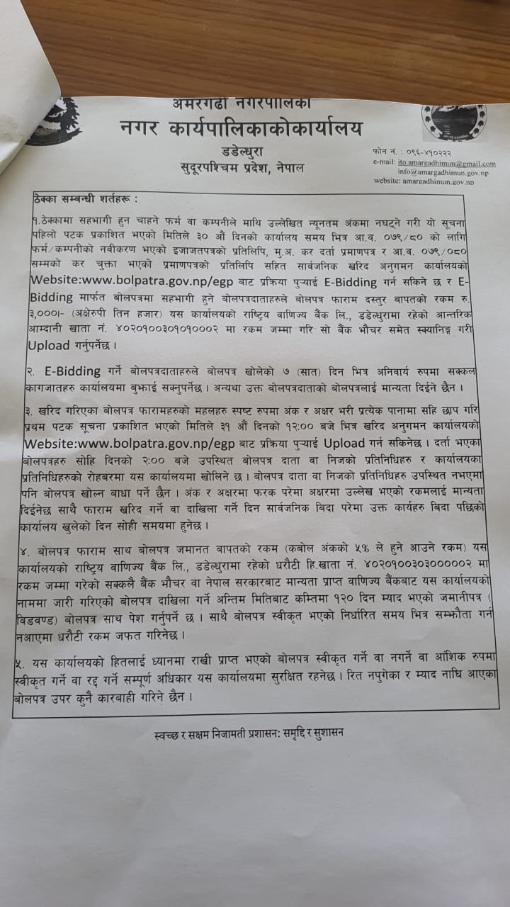 आ.ब. ०८०।८१ को लागी आन्तरिक आयको ठेक्का बन्दोबस्त गर्ने सम्वन्धी बोलपत्र आह्ववानको सूचना ।।।