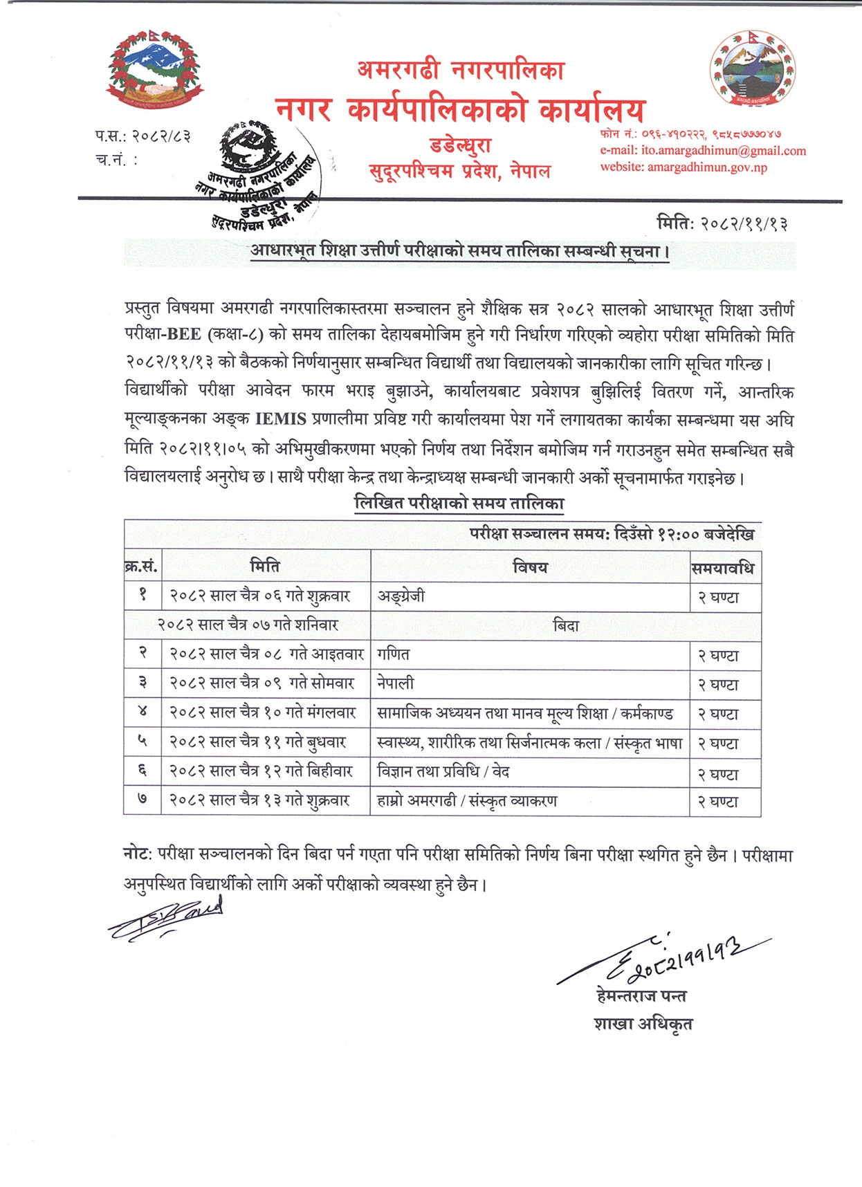 कक्षा ५ र आधारभूत शिक्षा उत्तीर्ण परिक्षाको समय तालिका सम्वन्धि सूचना ।।।