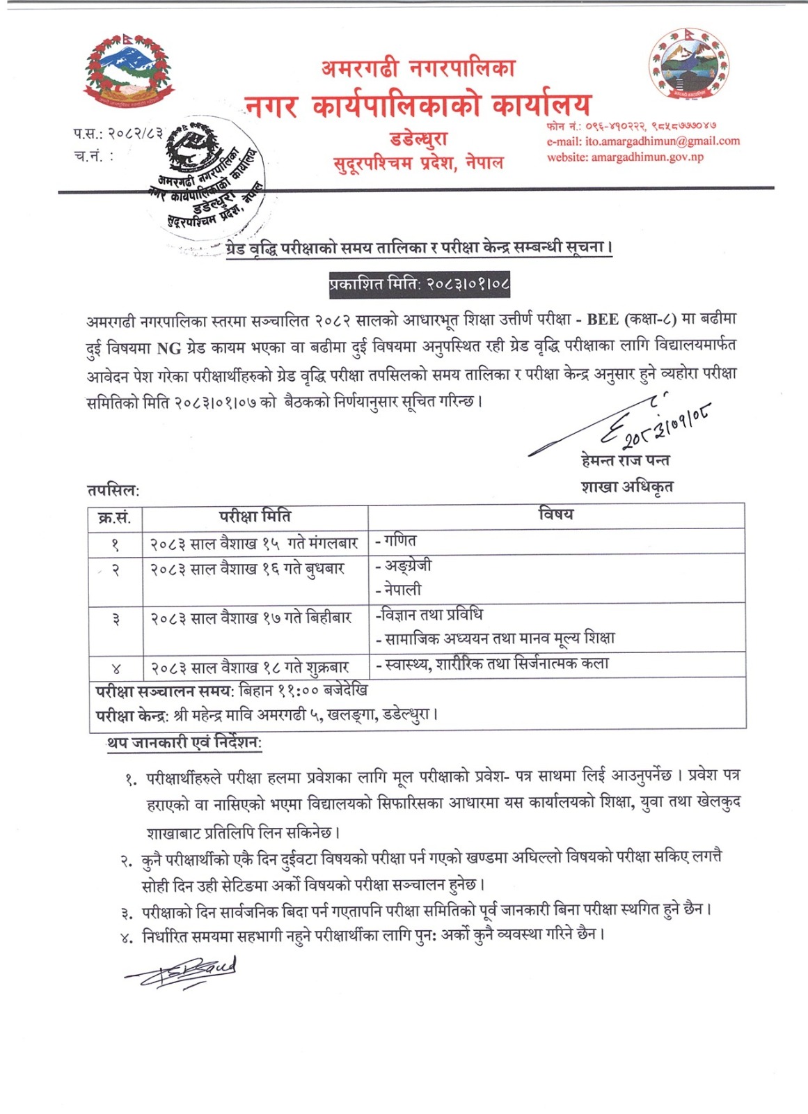 ग्रेड वृद्धि परीक्षाको समय तालिका र परीक्षा केन्द्र सम्बन्धी सूचना ।।।