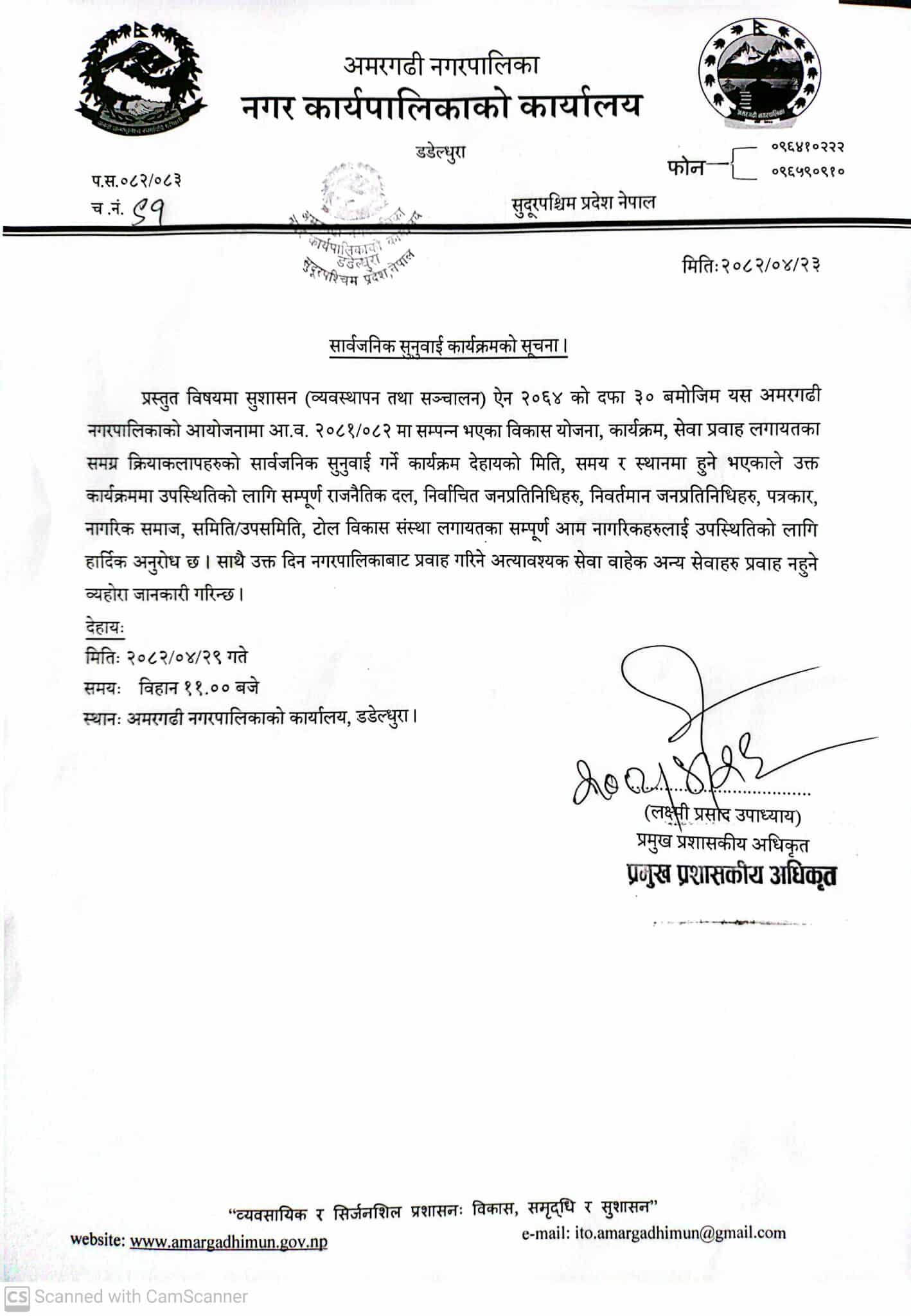 सार्वजनिक सुनुवार्ई कार्यक्रम सम्वन्धि सूचना ।।